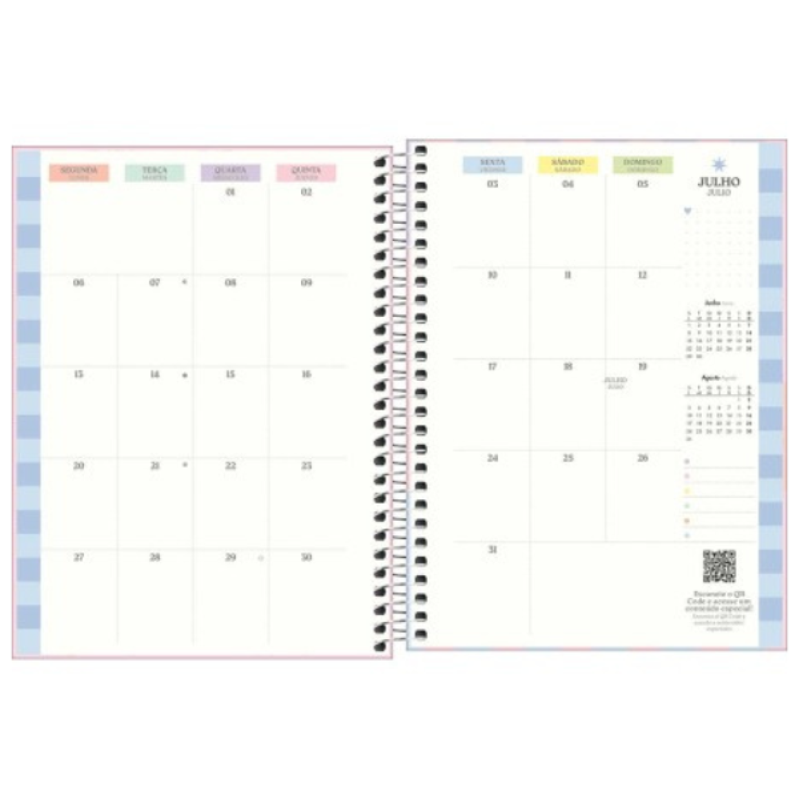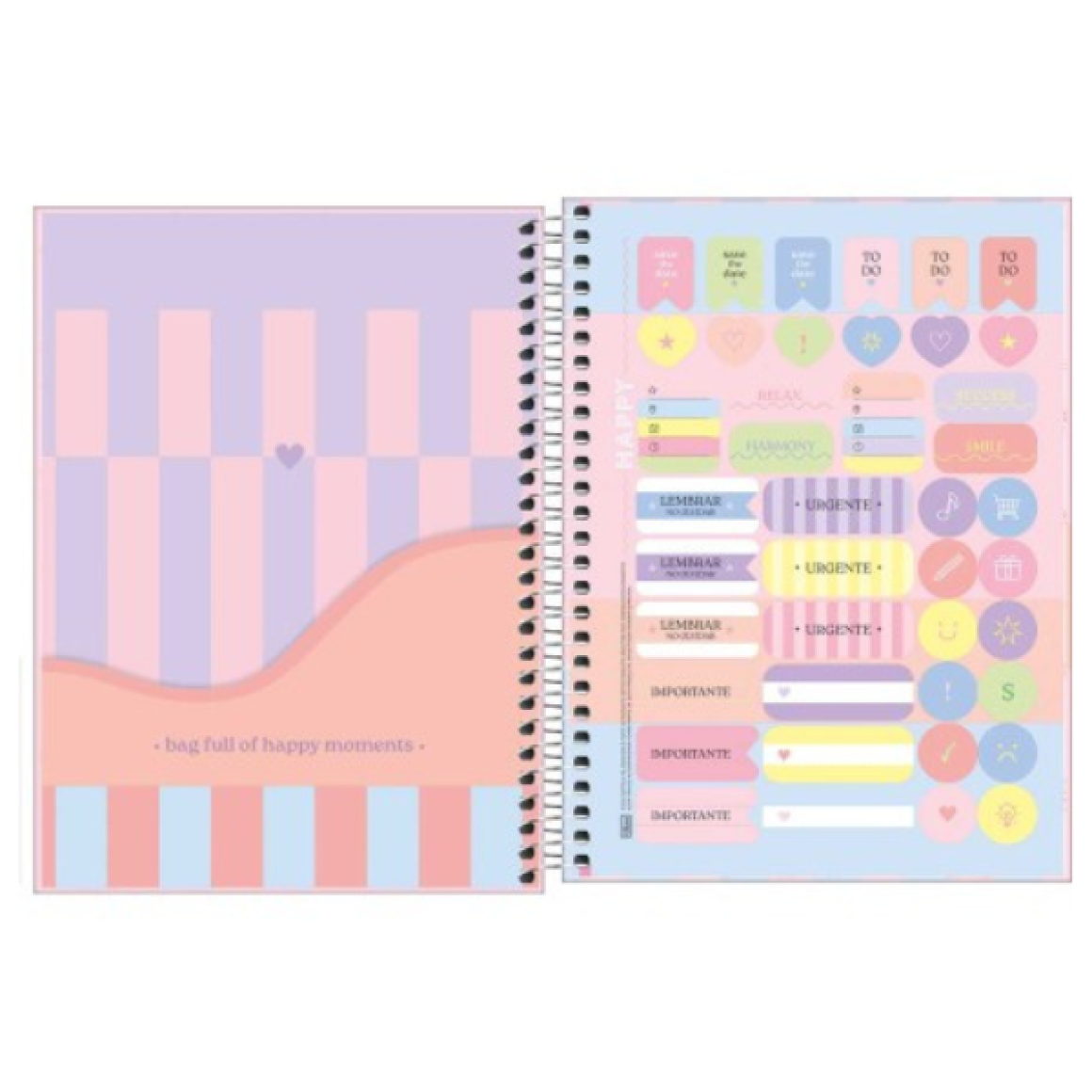 A Agenda Espiral Planner Happy 2026 é prática, organizada e cheia de estilo, perfeita para planejar o ano com eficiência. Com espaçamento ideal para compromissos, tarefas e anotações, ajuda a manter sua rotina organizada de forma clara e divertida. Seu design moderno e colorido, aliado à espiral resistente, garante durabilidade e praticidade no dia a dia.