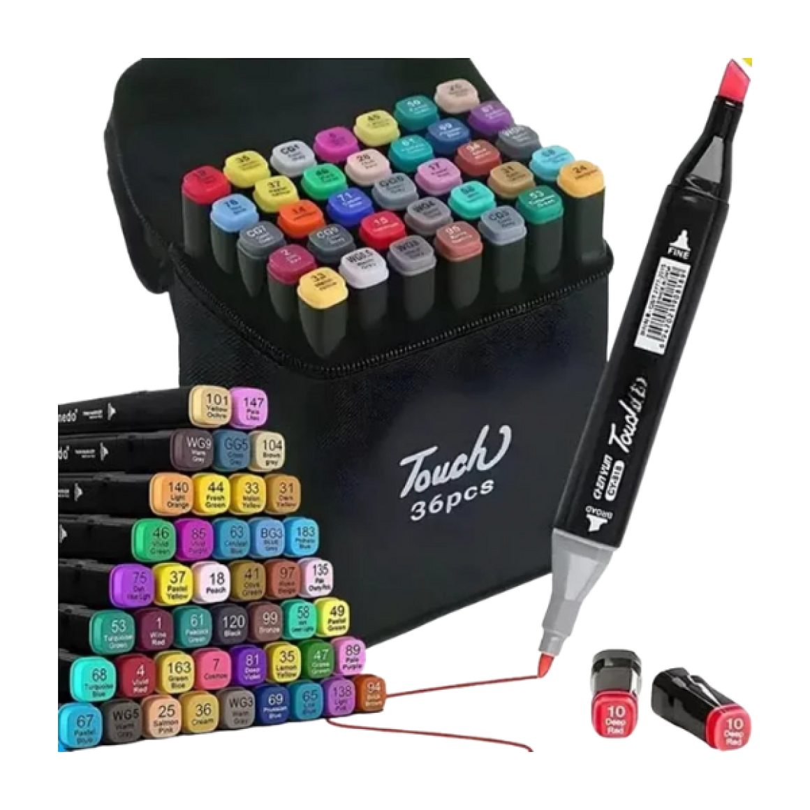 Explore sua criatividade com o estojo completo de Canetinhas Touch com 36 cores vibrantes! Ideais para desenhos, lettering, ilustrações e trabalhos artísticos, elas oferecem pigmentação intensa, traço suave e acabamento profissional.
