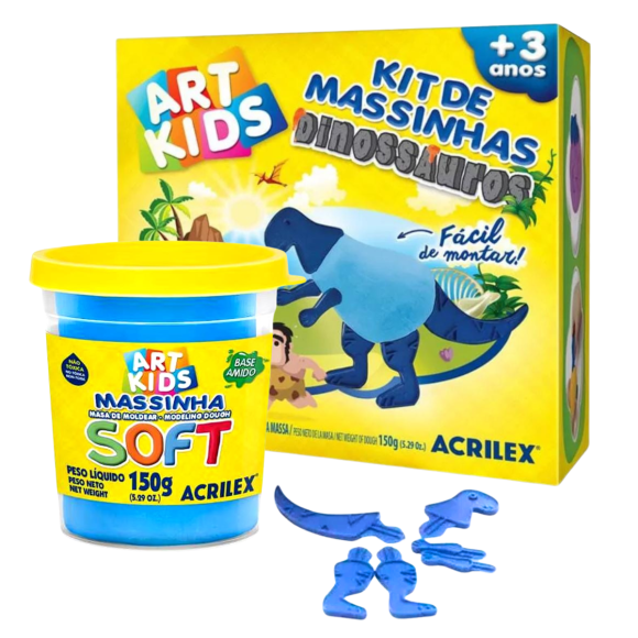 KIT MASSINHA DE MODELAR DINOSSAURO AZUL ART KIDS 150G ACRILEX
