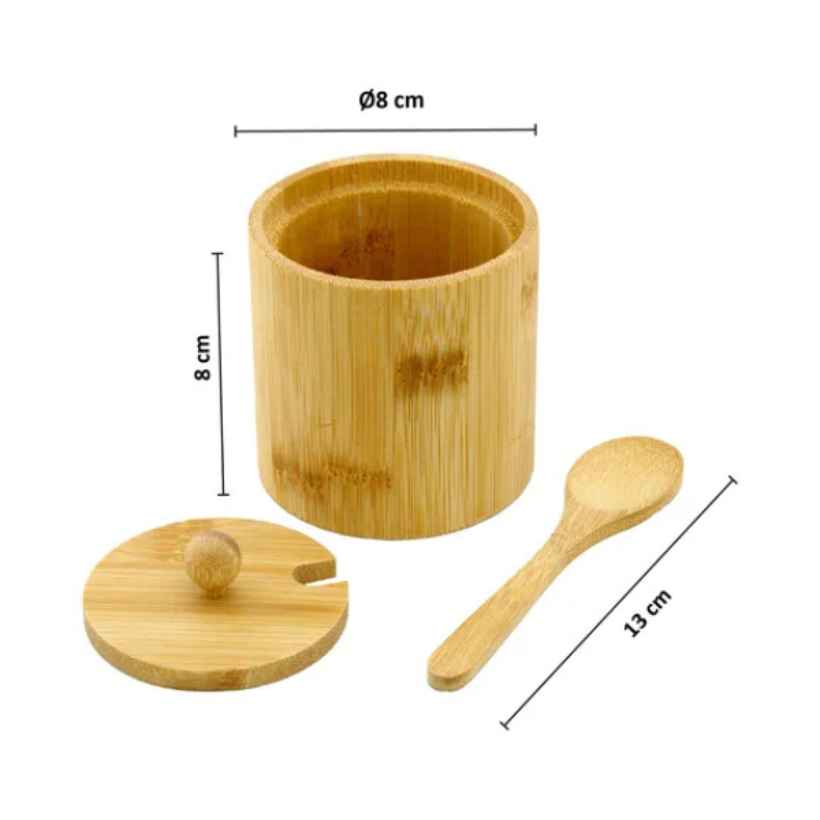 O Pote de Bambu com Colher Casita é perfeito para armazenar mel, temperos, geleias ou outros alimentos de forma prática e charmosa. Produzido em bambu natural, alia durabilidade, leveza e um toque rústico elegante à sua cozinha.