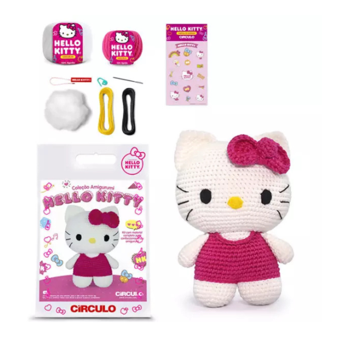 O Kit Amigurumi Círculo – Coleção Hello Kitty permite criar a famosa gatinha em crochê de forma prática e divertida. Com materiais de qualidade e passo a passo detalhado, é perfeito para iniciantes e também para quem já tem experiência com amigurumi. O resultado é uma peça encantadora, ideal para decoração, presentes ou coleções especiais.