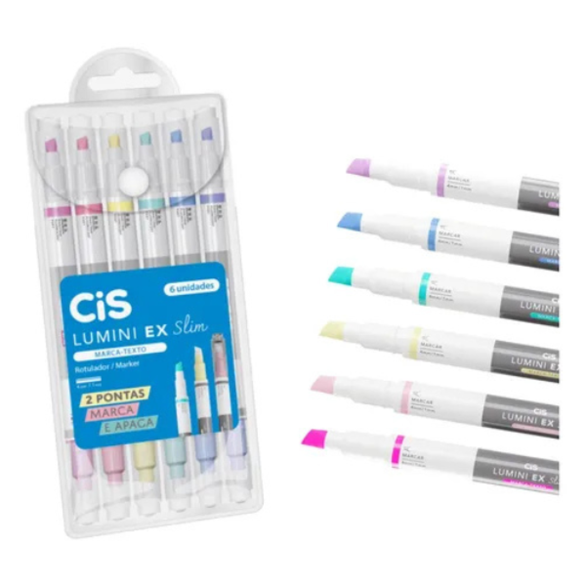 Estojo Marca Texto Cis Lumini Slim – 6 Cores