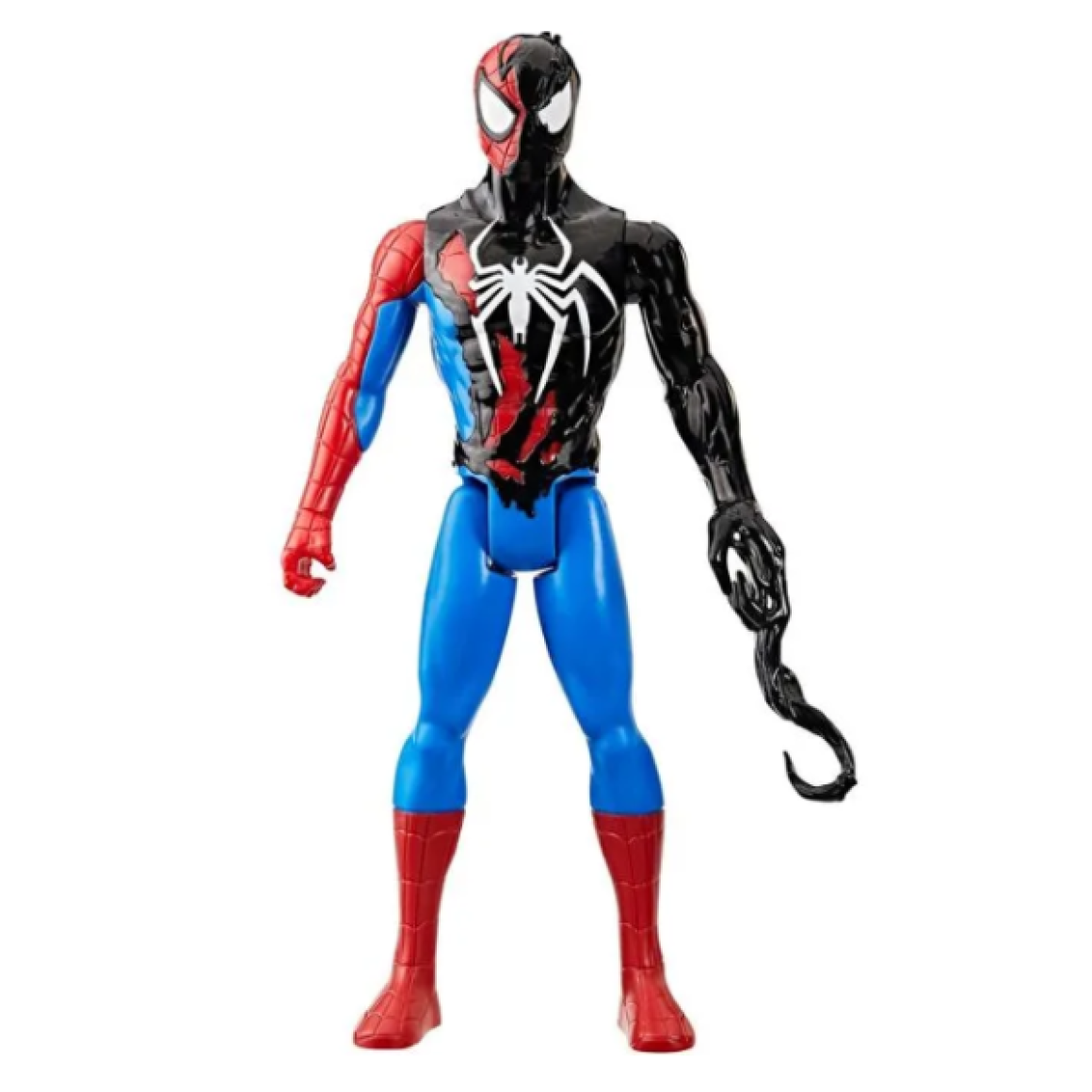 Boneco Homem-Aranha/Venom, trazendo a fusão perfeita entre o herói mais querido da Marvel e o simbionte mais temido. Com riqueza de detalhes, o boneco apresenta o contraste entre o traje clássico do Aranha e a transformação sombria causada pelo Venom, criando um visual marcante e cheio de atitude.